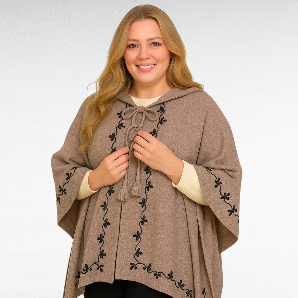 Beige ”Shery Star” huppuponcho ihanilla kirjailuilla – ajaton ja naisellinen valinta.