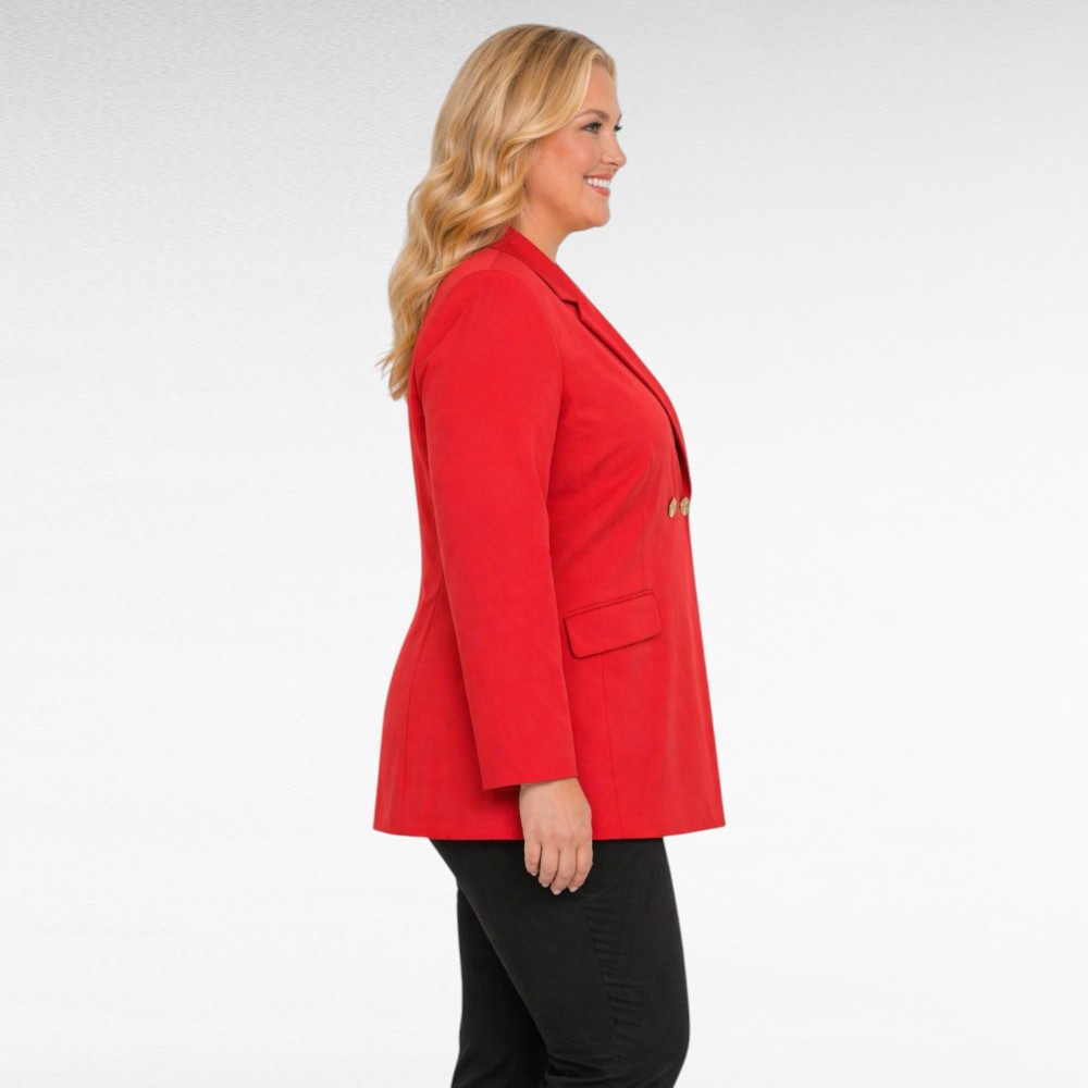 Silkkimateriaalista valmistettu ”Zentex”-bleiseri, jossa vuori ja 2 kultaista nappia.Koristetaskut.
