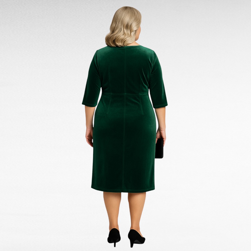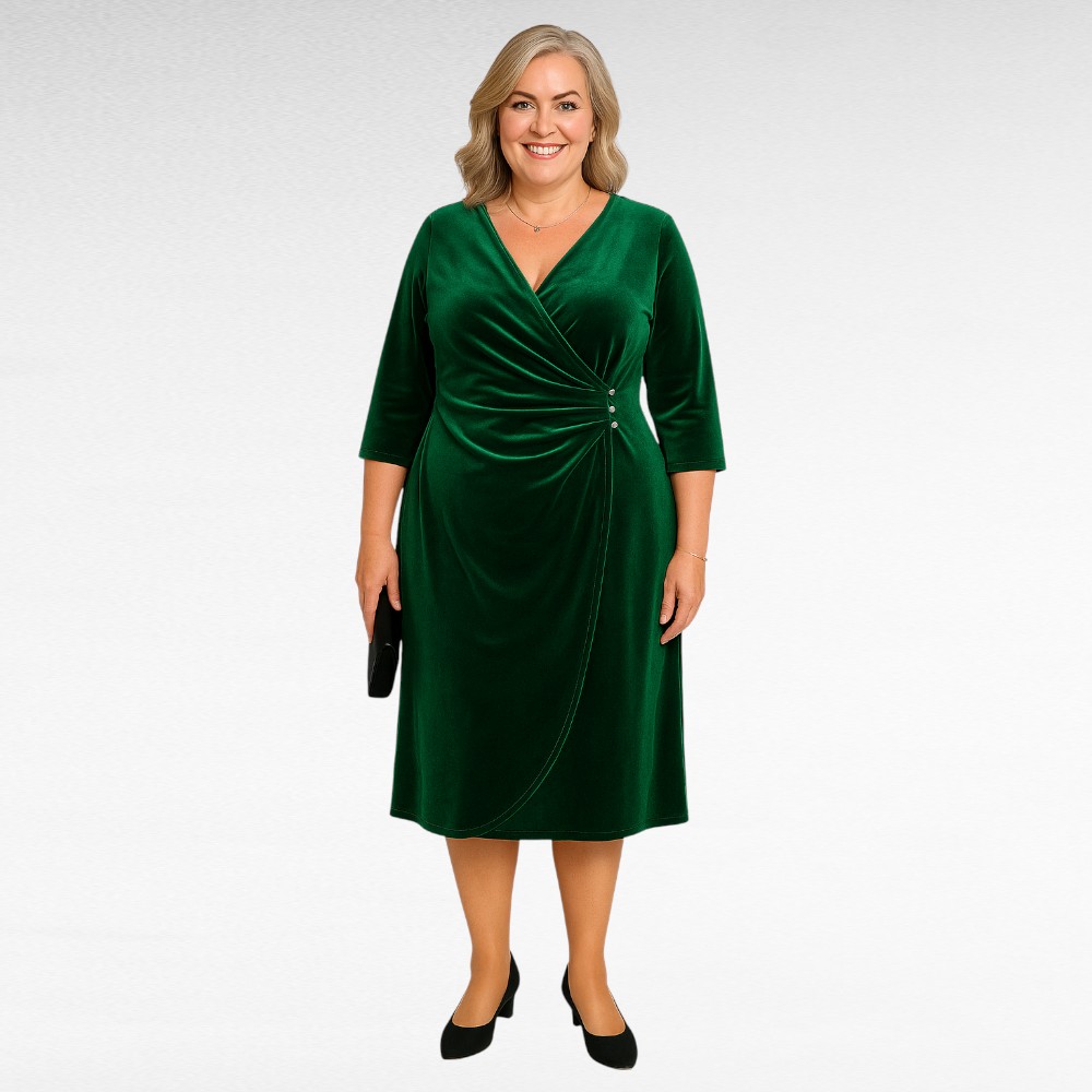 Vihreä tai musta ”Ellos” samettimekko, jossa puolipitkät hihat ja gingham-leikkaus. Helma on ommeltu kiinni toiselta puolelta eikä ole auki. Hopeanväriset napit vyötäröllä ja hihoilla.