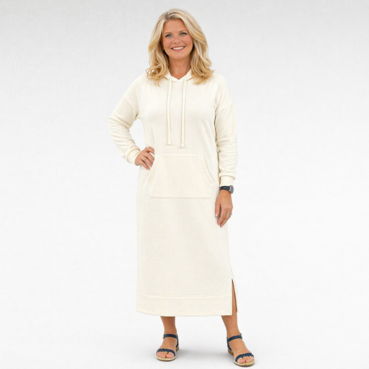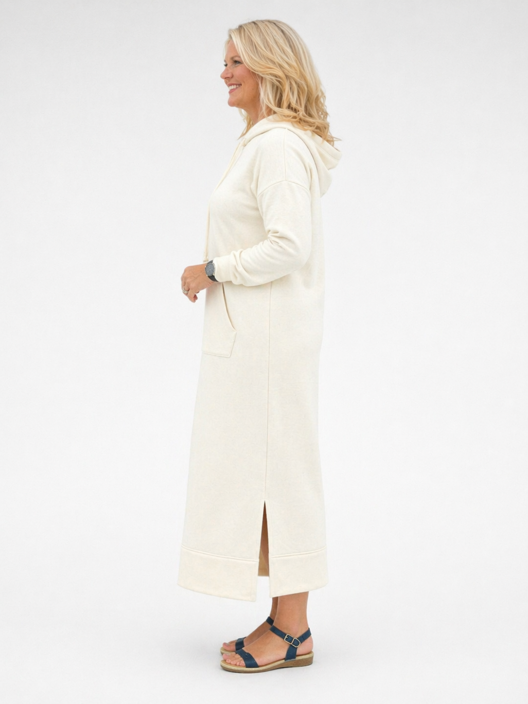 Hupullinen italialainen mekko tavaramerkilta”Kesi”. Olkaosa on hieman pidennetty. Hupun reunassa kiristysnaru.Hupparimekko on mukava ja ajattoman mallinen, ja sen pituus ulottuu noin puoleen sääreen. Mekossa on huppu, pitkät hihat ja edessä käytännöllinen kengurutasku. Sivussa oleva noin 10 cm halkio tuo liikkumavapautta ja pienenä yksityiskohtana kevyttä naisellisuutta.