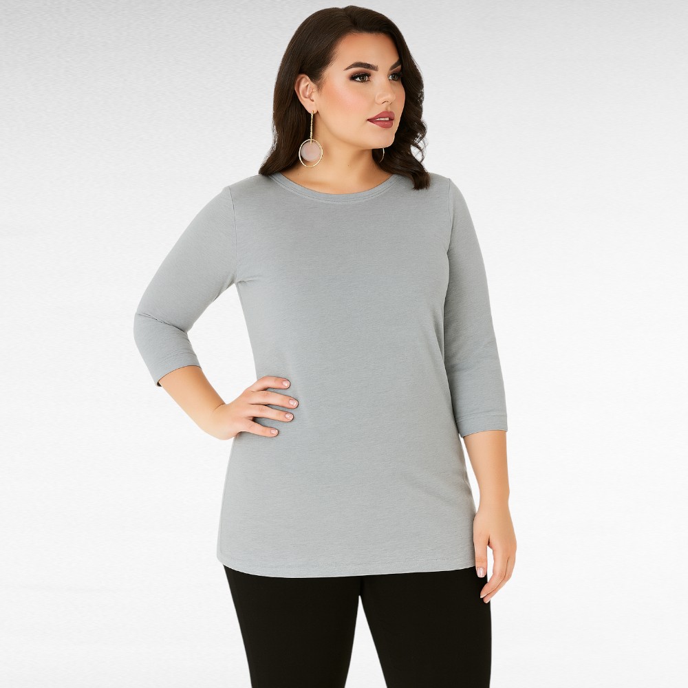 Puolipitkien hihojen suut ovat muutaman sentin verran tyylikkäästi käännetty, mikä antaa viimeistellyn vaikutelman. Kaareva pääntie korostaa kauniisti kasvoja ja tekee puserosta naisellisen.