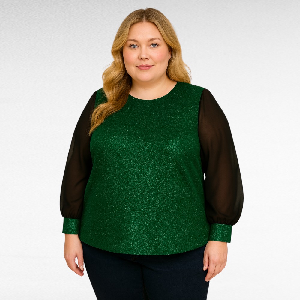 Juhlava vihreä ”Klaudia”tuunika, jossa klassinen ja selkeälinjainen malli kohtaa naisellisen keveyden. Edusta ja selkä ovat kauniisti hohtavaa, smaragdinvihreää kangasta, joka tuo asuun juhlan tuntua ilman liiallista näyttävyyttä.