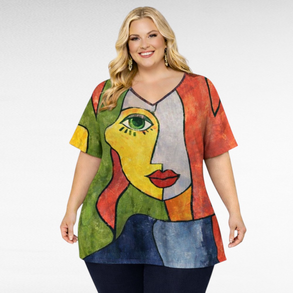 Vihreä boho- tyylinen tunika. Kulutettu efekti, värikäs kasvokuvio kuin maalaus ja pehmeä kangas. Etu- ja takaosa ovat samalaisia!