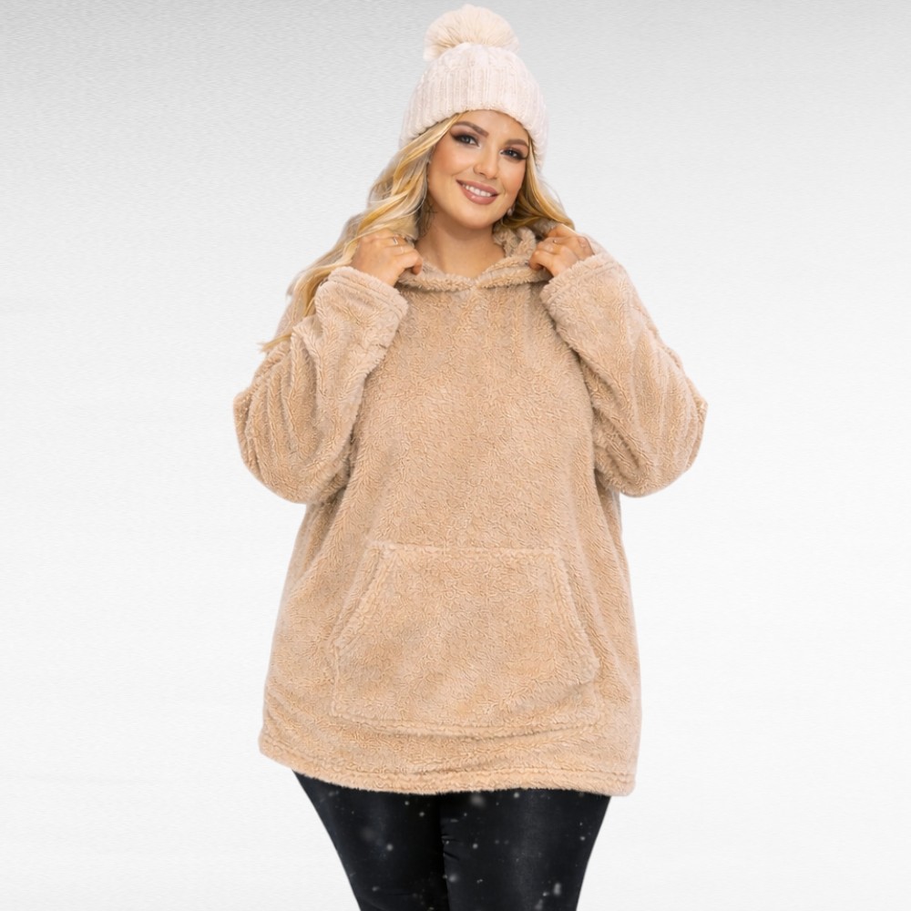 Ihastuttavan kissapehmeä, fleece-mainen huppari isoilla kengurutaskuilla on täydellinen kumppani viileisiin talvipäiviin. Valmistettu kaksipuoleisesta nukka-fleecestä, joka hellii ihoa ja tuo lämpöä juuri silloin kun sitä tarvitset.