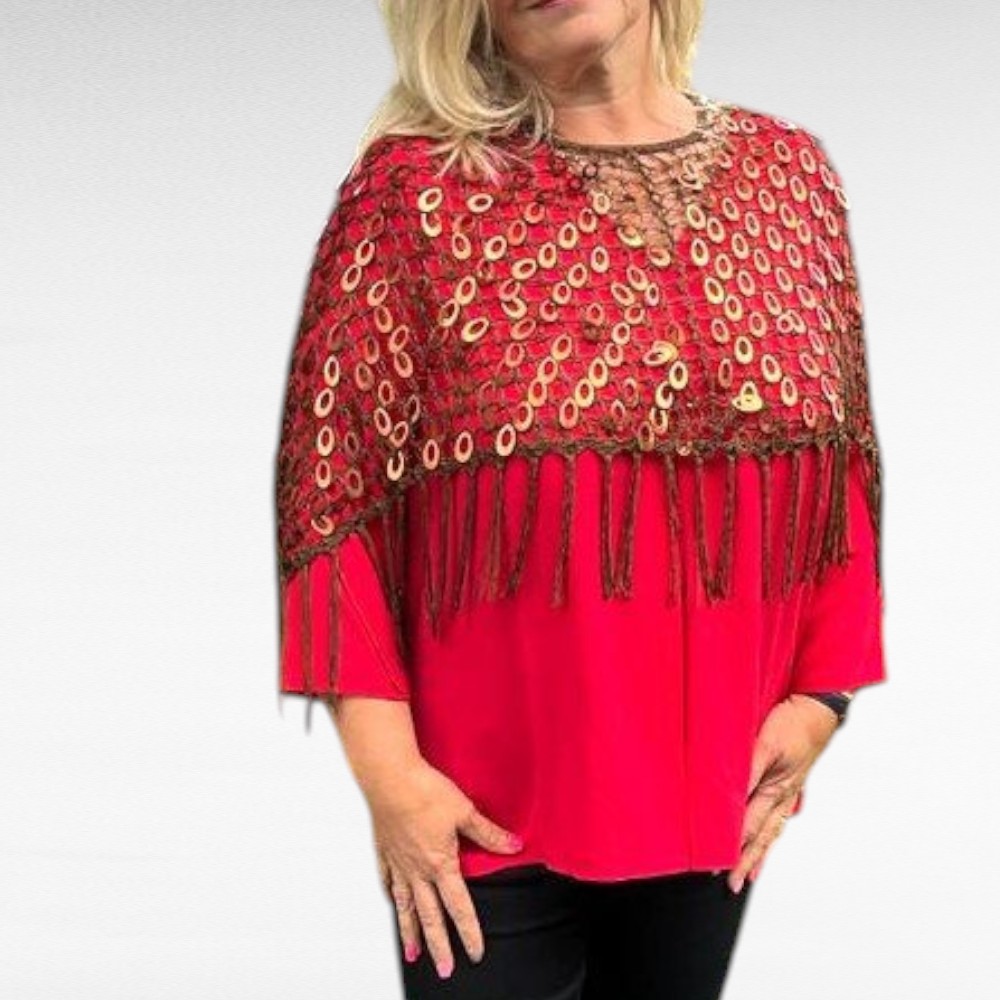 Materiaali: 100% viskoosia, koristeltu paljeteilla.
