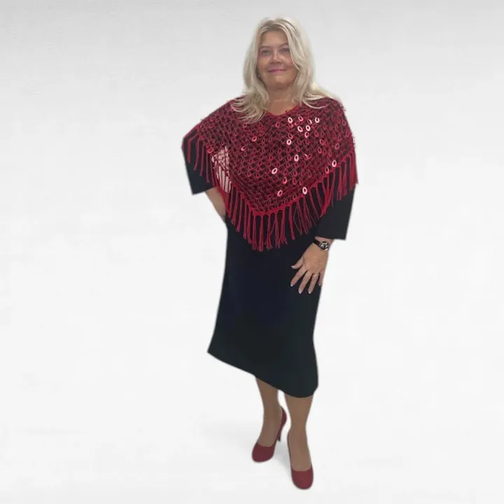Koko: One Size – sopii sekä puseron että mekon päälle, peittää olkapäät ja antaa asulle lisää näyttävyyttä.
