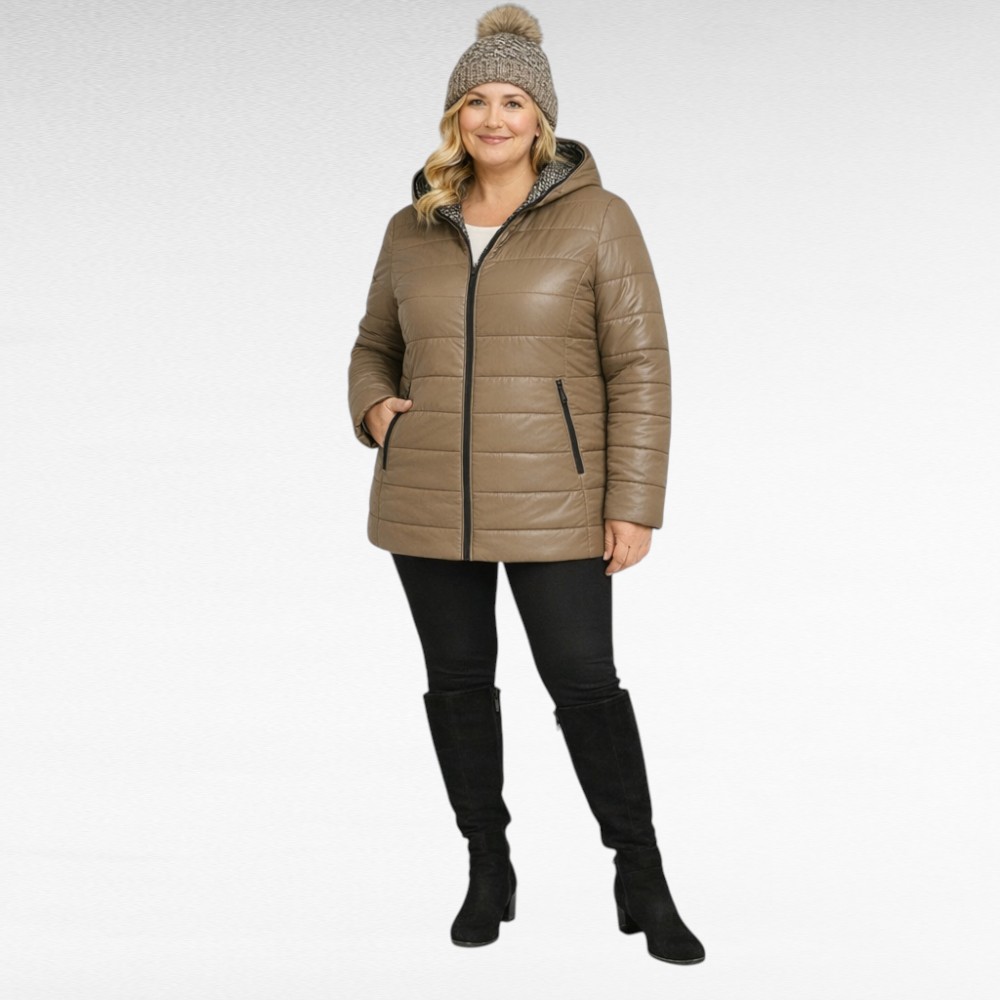 JO.502- Musta tai beige hupullinen takki ”Jaana”