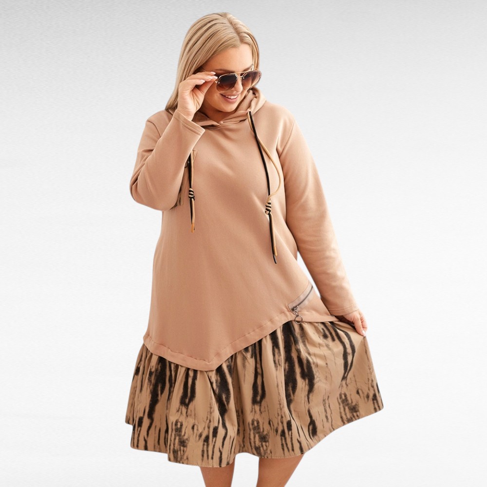 Tämä hupparimekko “Gerly” on suunniteltu naiselle, joka rakastaa leikitellä tyylillään tinkimättä mukavuudesta.