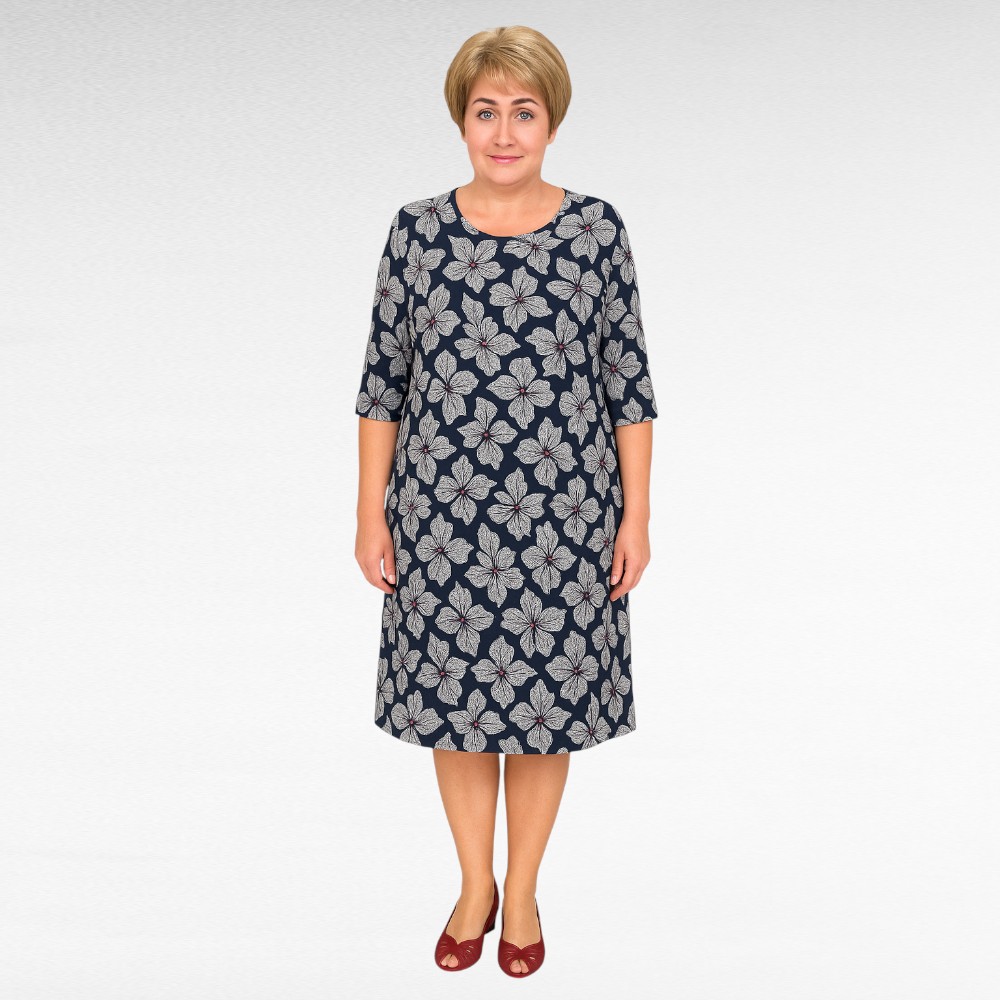 Mekko ” Sari””on mukava ja kaunis valinta arkeen. Tummansininen pohja yhdessä valkoisten kukkakuosien kanssa luo klassisen mutta elävän ilmeen. Suoraleikkaus antaa liikkumavapautta ja sopii kauniisti erilaisille vartalotyypeille. Joustava kangas takaa käyttömukavuuden, ja puolipitkät hihat tekevät mekosta erinomaisen valinnan sekä työhön että vapaa-aikaan.