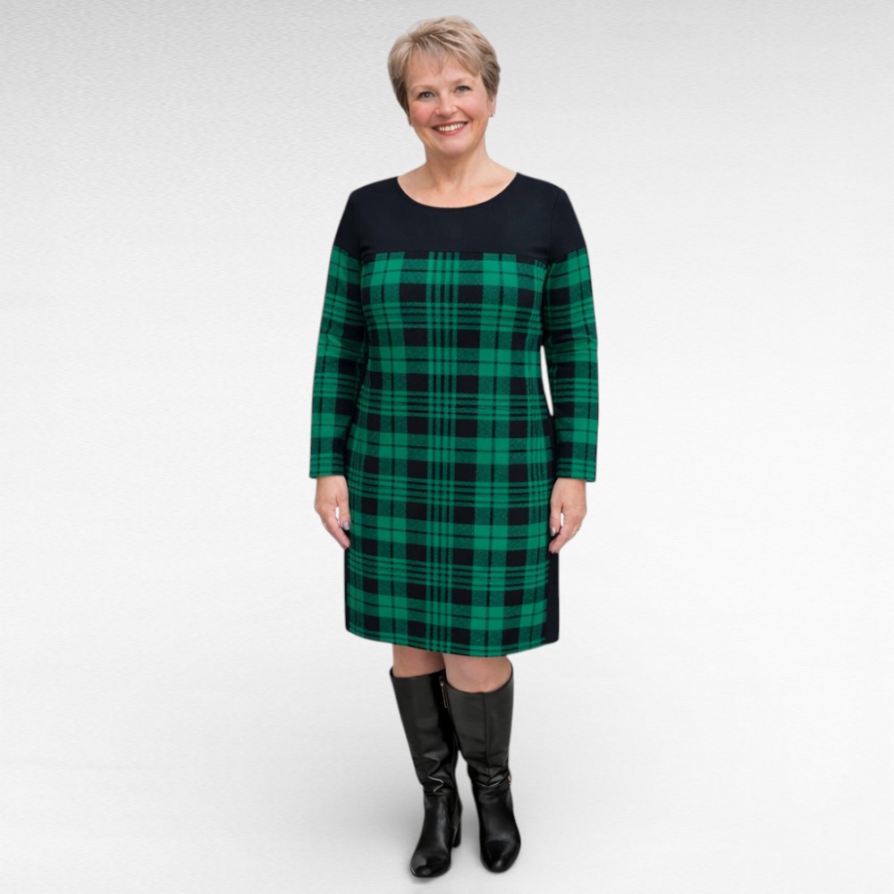 Kaunis“Klaarika” mekko on ajattoman tyylikäs ja naisellinen valinta arkeen ja juhlaan. Mekossa on klassinen ruutukuosi, joka tuo ilmeeseen ryhtiä ja persoonallisuutta. Yläosa ja hihat ovat miellyttävää, joustavaa mustaa trikoota, joka tuntuu mukavalta päällä ja istuu kauniisti. Polvipituinen malli ja selkeä leikkaus imartelevat vartaloa ja tekevät mekosta helpon käyttää eri tilanteissa. Klaarika-mekko on varma valinta, kun haluat näyttää huolitellulta ilman turhaa kikkailua.