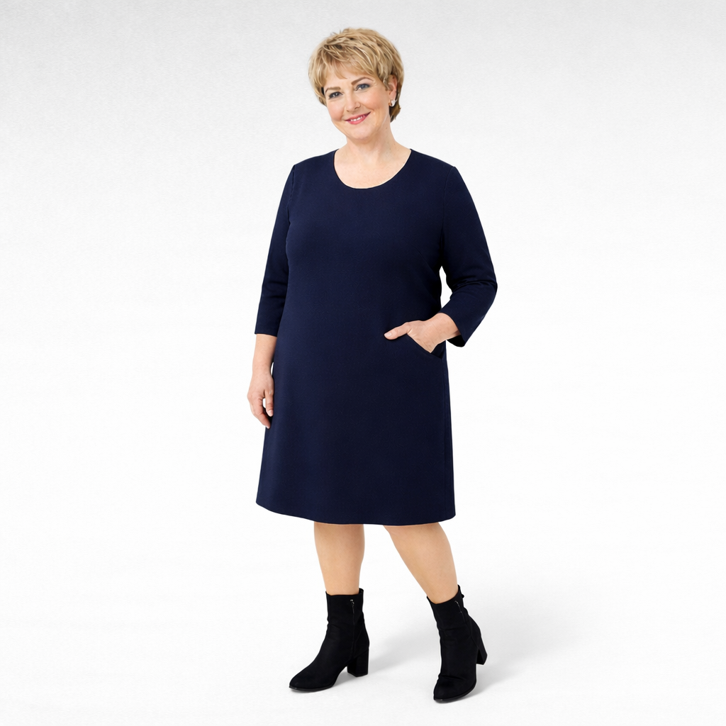 Klassinen taskullinen tummasininen mekko ”Loviisa”