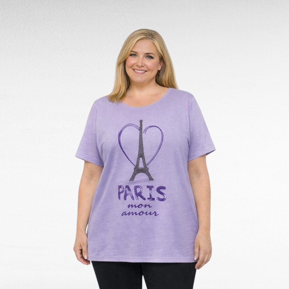 Sireeninvärinen pehmeä ja mukava englantilainen ”Janet & Joyce” -T-paita romanttisella hopeisella Pariisi-printillä. Suoralinjainen malli, pyöreällä pääntiellä ja lyhyillä hihoilla – yksinkertainen, naisellinen ja täydellinen jokapäiväiseen käyttöön. Sivuilla alareunassapienet halkiot.