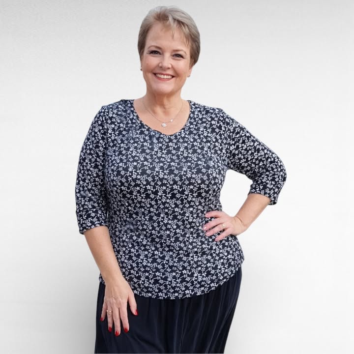 Mustavalkoisella kukkakuviolla pehmeä ja mukava 2/3 hihainen pusero.