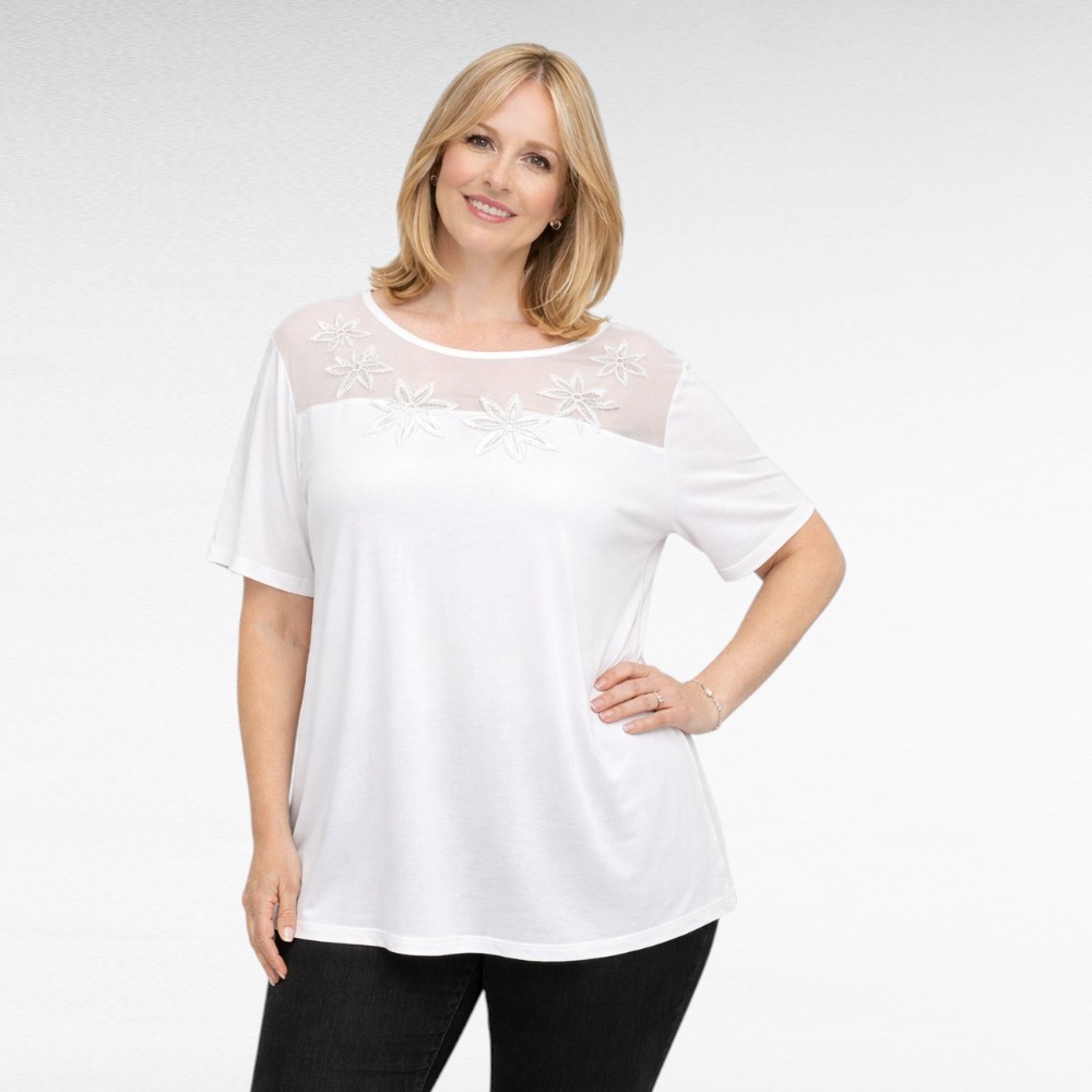 Valkoinen ihoystävällinen “Nightingales”-pusero Englannista on kevyt ja kauni laskeutuva mallinen, mukavan väljä ja sopii hyvin jokapäiväiseen käyttöön. Rinnan yläosa on hieman läpikuultavasta verkkokangasta, jota koristavat herkät kirjotut kukkakuviot, tuoden naisellista eleganssia. Lyhyet hihat ja yksinkertainen leikkaus tekevät siitä ajattoman ja helposti yhdisteltävän vaatteen.