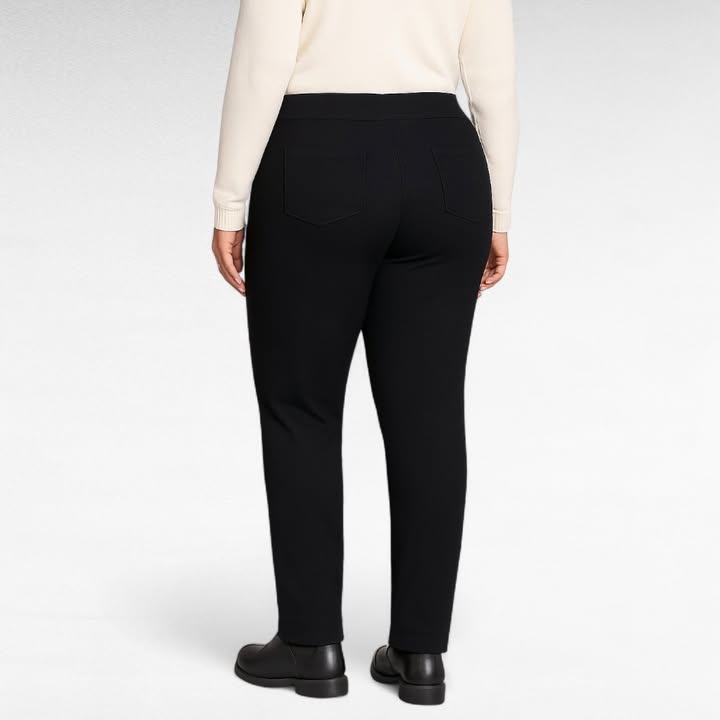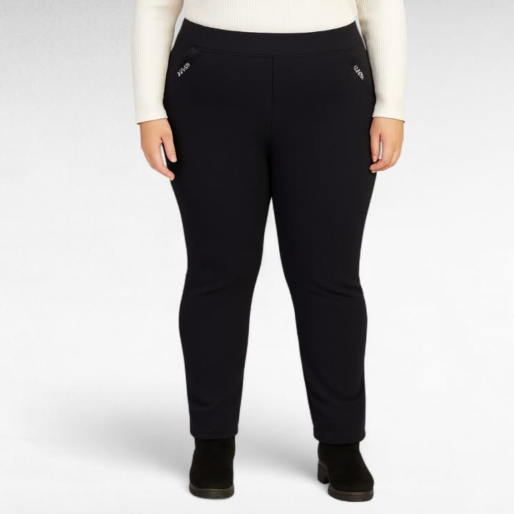 Lämpimät ”FYV” mustat housut korkeammalla yläosalla ja leveällä kuminauhavyötäröllä . 4 taskua,hopeiset koristeet taskujen reunoilla.Sopivat arkeen ja juhlallisempiinkin tilaisuuksiin.