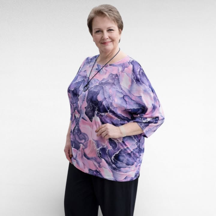 Vaaleanpunainen-violetti- mustakuvioinen tunika